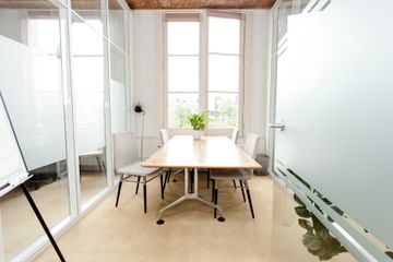 The room is tiny and old. Doesn't really look like the picture at all… mehr The room is tiny and old. Doesn't really look like the picture at all. You walk in through a very messy office, which isn't a great impression if you booked it for a client meeting. The window was difficult to open/close too. The room looks unprofessional and you can hear everything that's going on just outside in the office.
