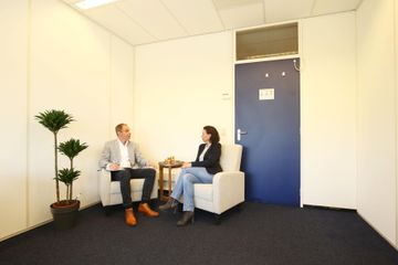 Rustige blauwe spreekkamer voor 1–4 personen in Almere – direct te boeken