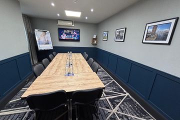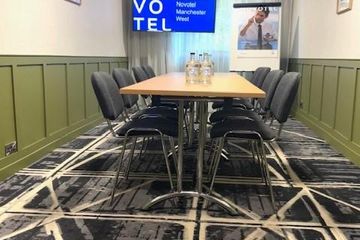 Lichte boardroom voor 8 met 50‑inch scherm, wifi en gratis parkeren in Worsley